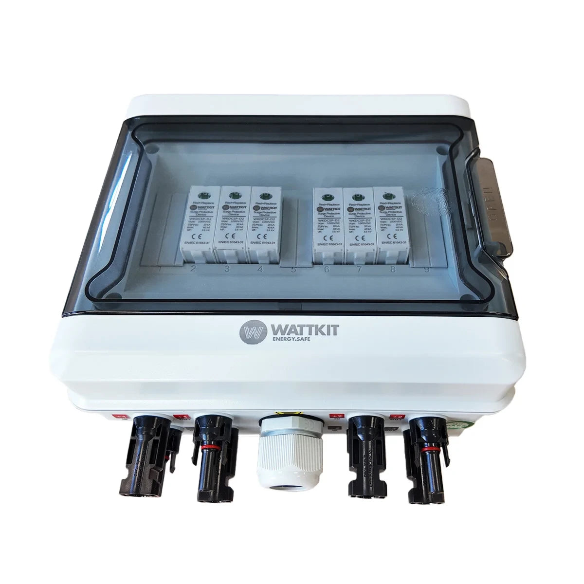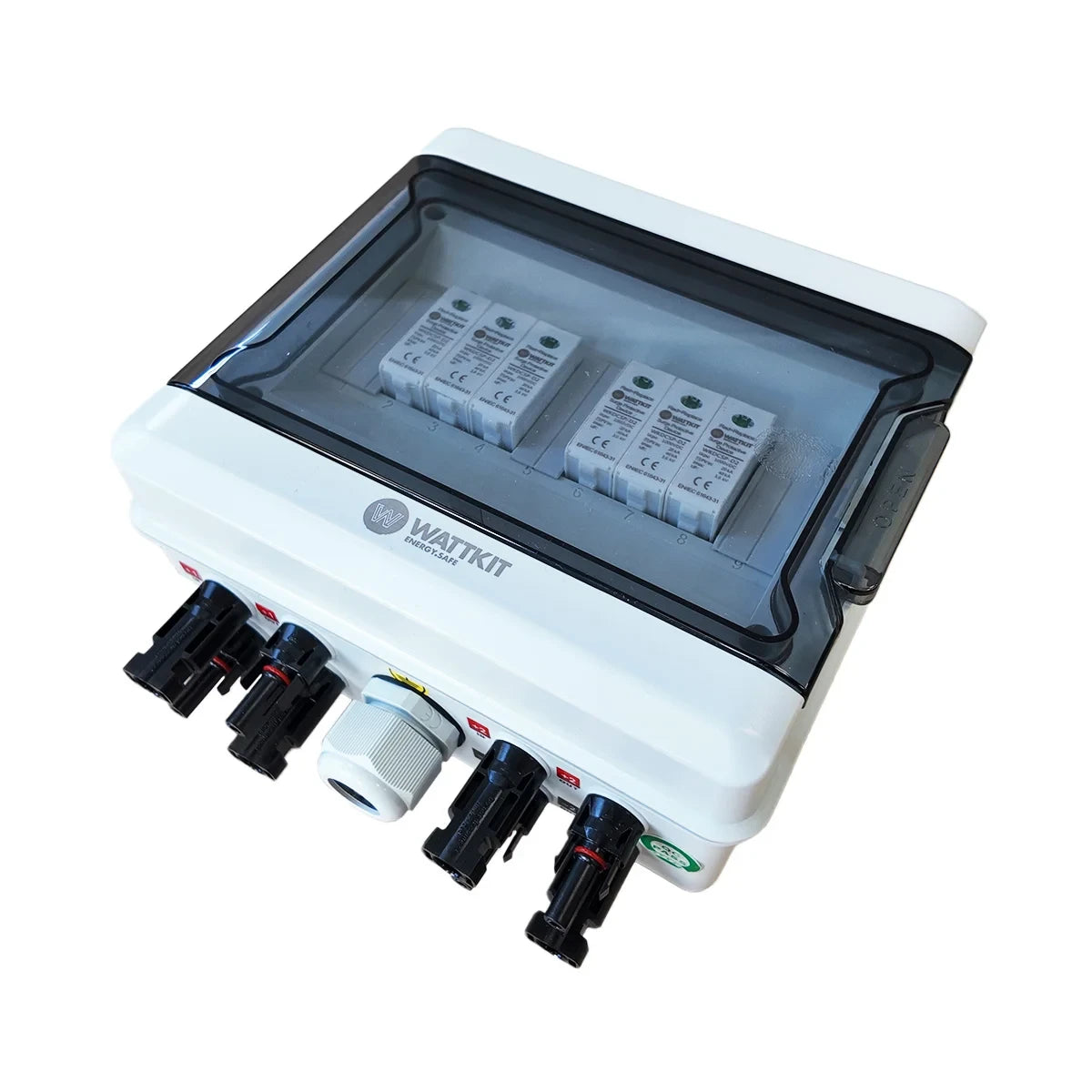 Die vormontierte DC-Box 2-String (T2) ist eine kompakte, installationsfertige PV-DC-Schutzbox für kleine Solaranlagen im Wohnbereich. Sie unterstützt bis zu zwei PV-Strings und verfügt über einen Überspannungsschutz Typ 2 (SPD), der Wechselrichter und PV-Anlage vor Überspannungen schützt. Die vorverdrahtete Konstruktion vereinfacht die Installation, reduziert die Anzahl der Anschlusspunkte und sorgt für eine saubere und zuverlässige DC-Schnittstelle zwischen Solarmodulen und Wechselrichter.